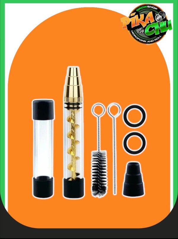 Fabricada en vidrio Pirex resistente al calor, con sistema twisty que permite cargar, girar y fumar de forma práctica y uniforme.